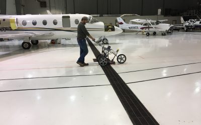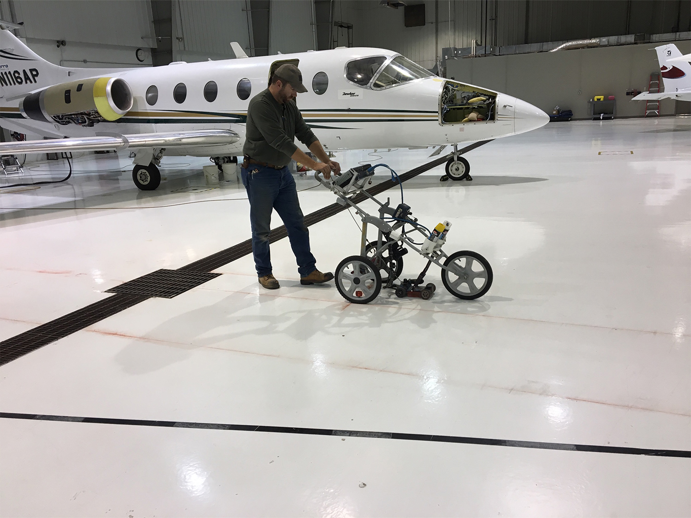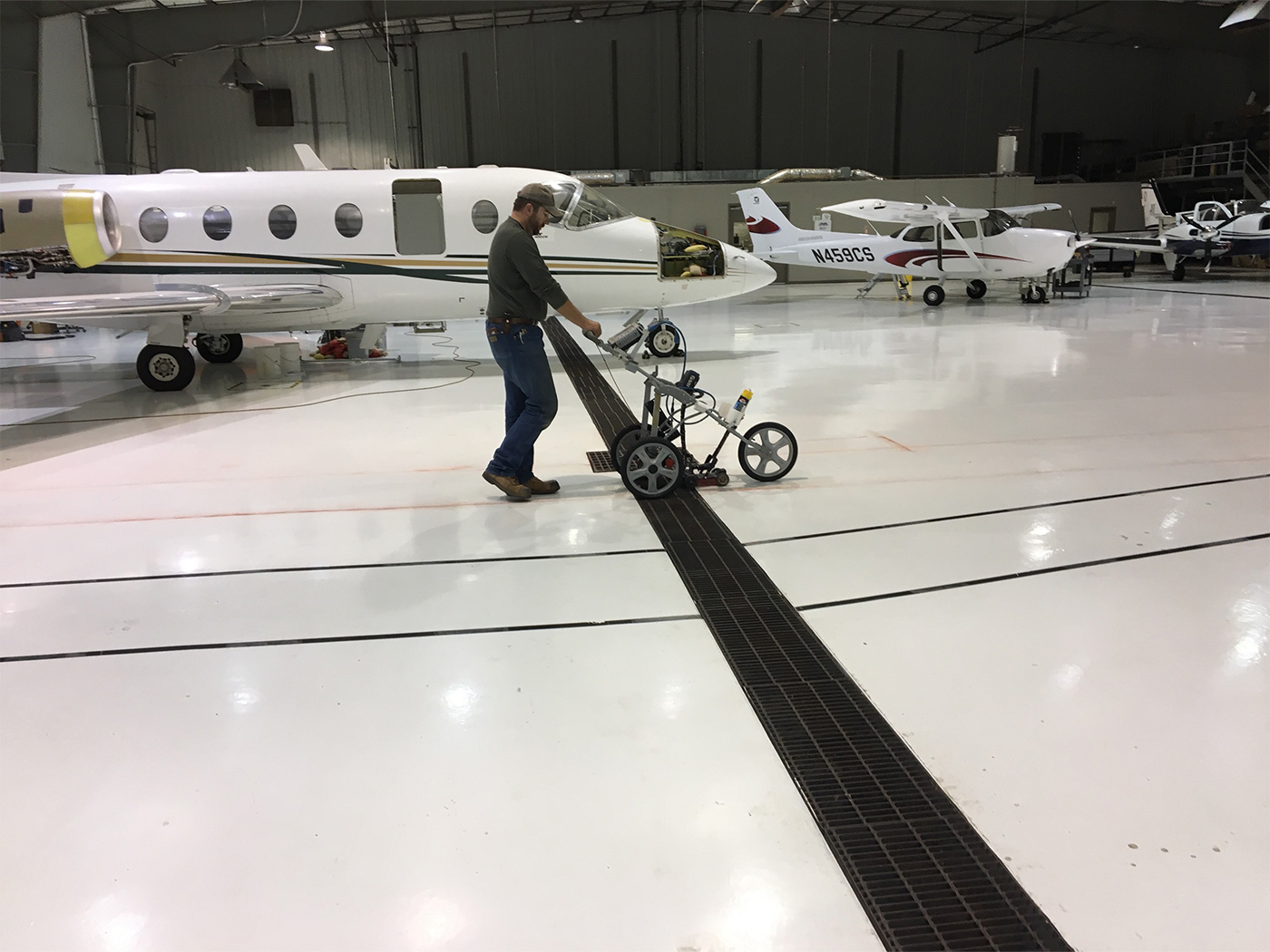 A collapsed storm drain in the Garmin aircraft hangar prompted an expedited repair. Our plumbing contractor needed approximately 150 feet of concrete scanned prior to saw cutting. Echo GPR Services scanned the length of the trench and was able to identify conduits prior to saw cutting. This allowed Echo the ability to avoid unnecessary electrical repairs at Garmin’s aircraft hangar.