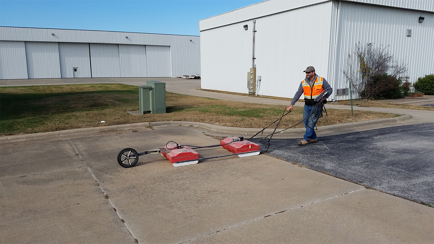 Owning one of the few antennas in the US that can go down over 100 feet has it’s perks. Echo GPR Services was called out to help with an environmental company in helping map out soil strata underneath parts of the Springfield airport. Using this data along with soil probing, the exact trend of certain layers of soil and rock under the soil can be accurately mapped out.